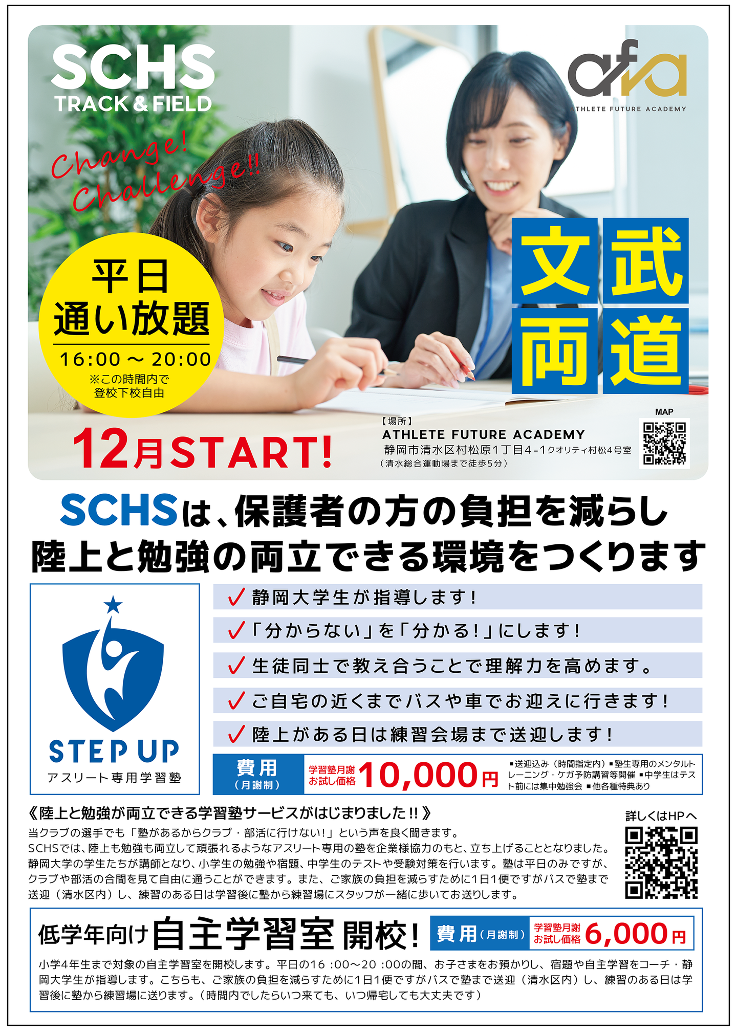 陸上も勉強も全力で取り組める学習塾「STEP UP」スタート!